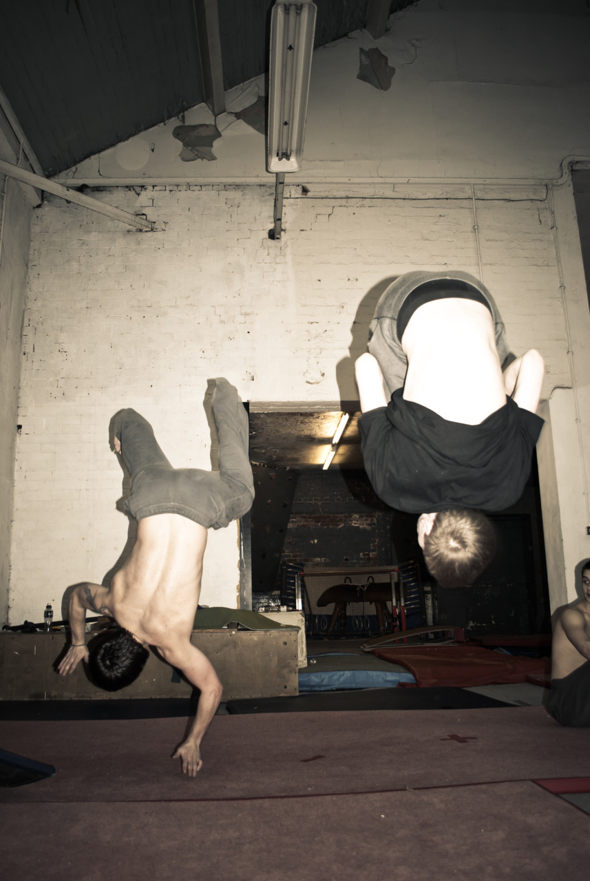 Here’s Liam (right) Teaching Nic (left) how to backflip in the gym.